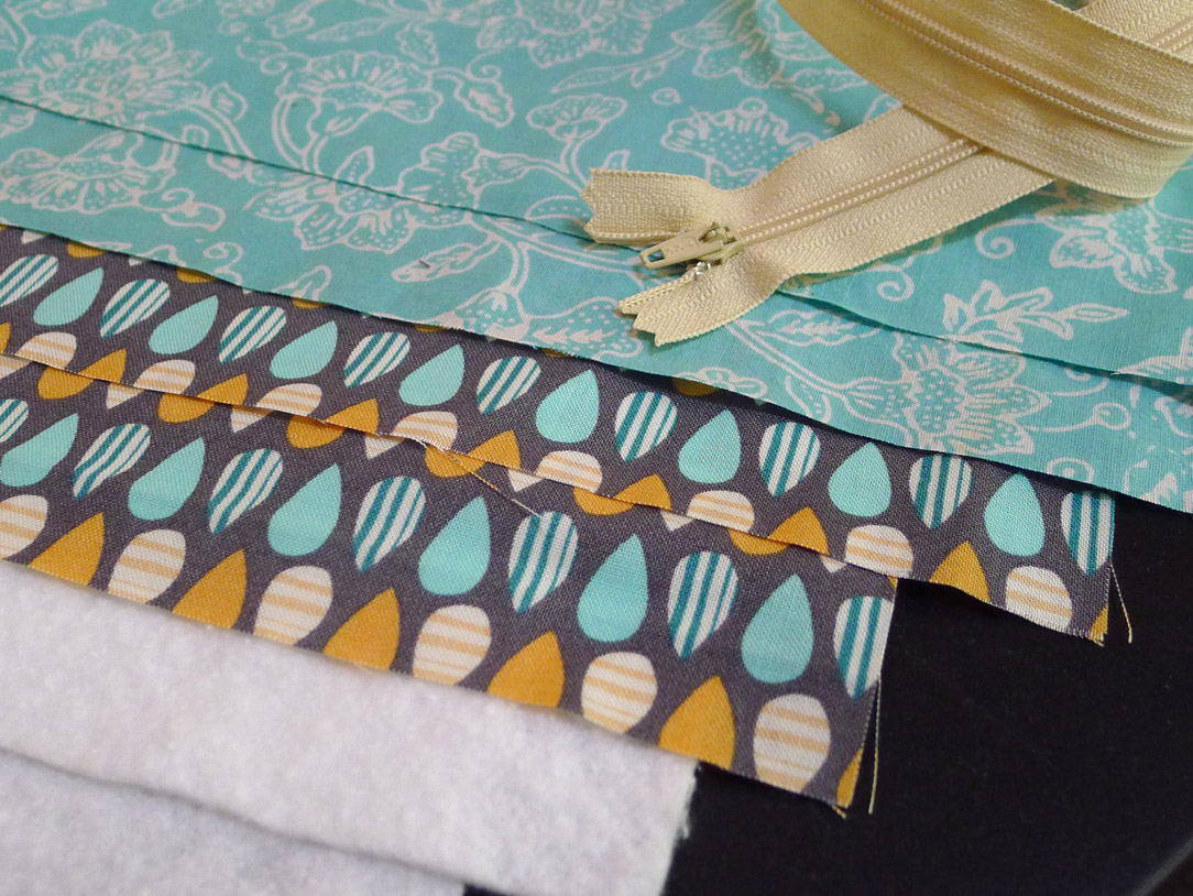 • Cut 11″ x 9″ main fabric, cotton batting, and lining, 2 pcs each. ( or larger if you prefer bigger case for more room, I am using 3/8″ seam allowance ).