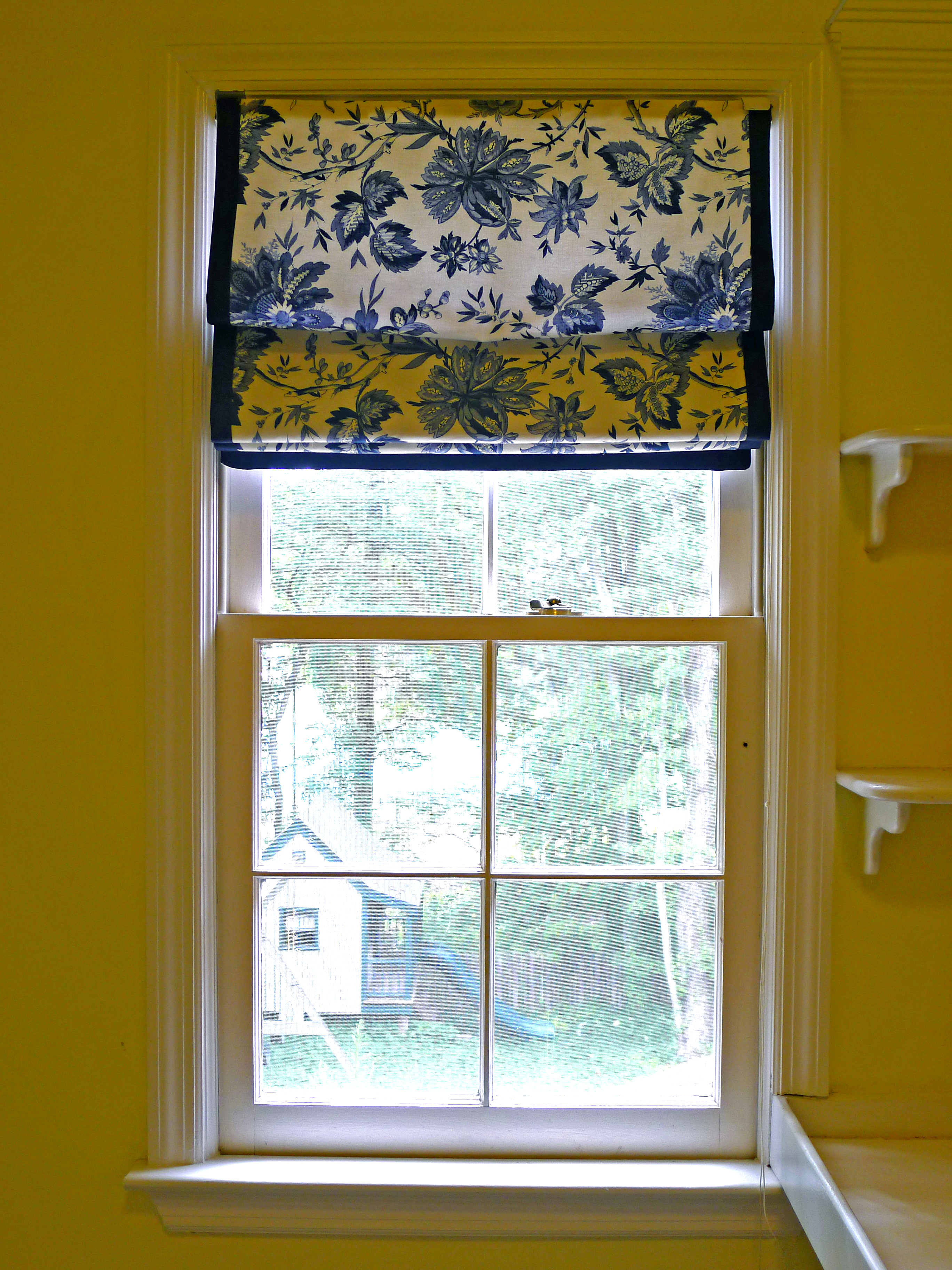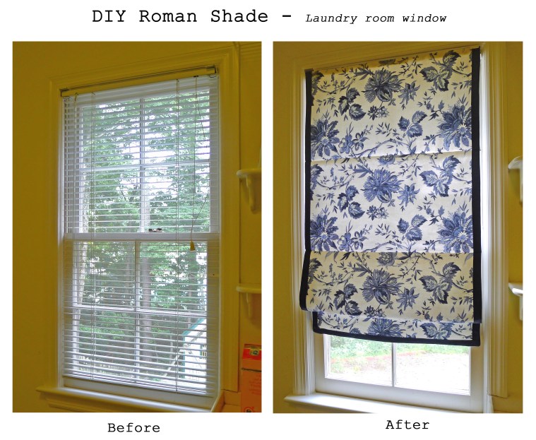 Initially, I planned to replace the aluminum blind in the laundry room with bamboo shade ( here is the link for anyone who is looking for bamboo shade www.paylessdecor.com). But then I wanted something with blue color to match the wallpaper below the ceiling and gave contrast to the yellow wall. Since I got some fabric coupons from JoAnn I thought why don’t just make fabric roman shade using parts of the blind I was going to replace. Voilà, my DIY project for laundry room window!