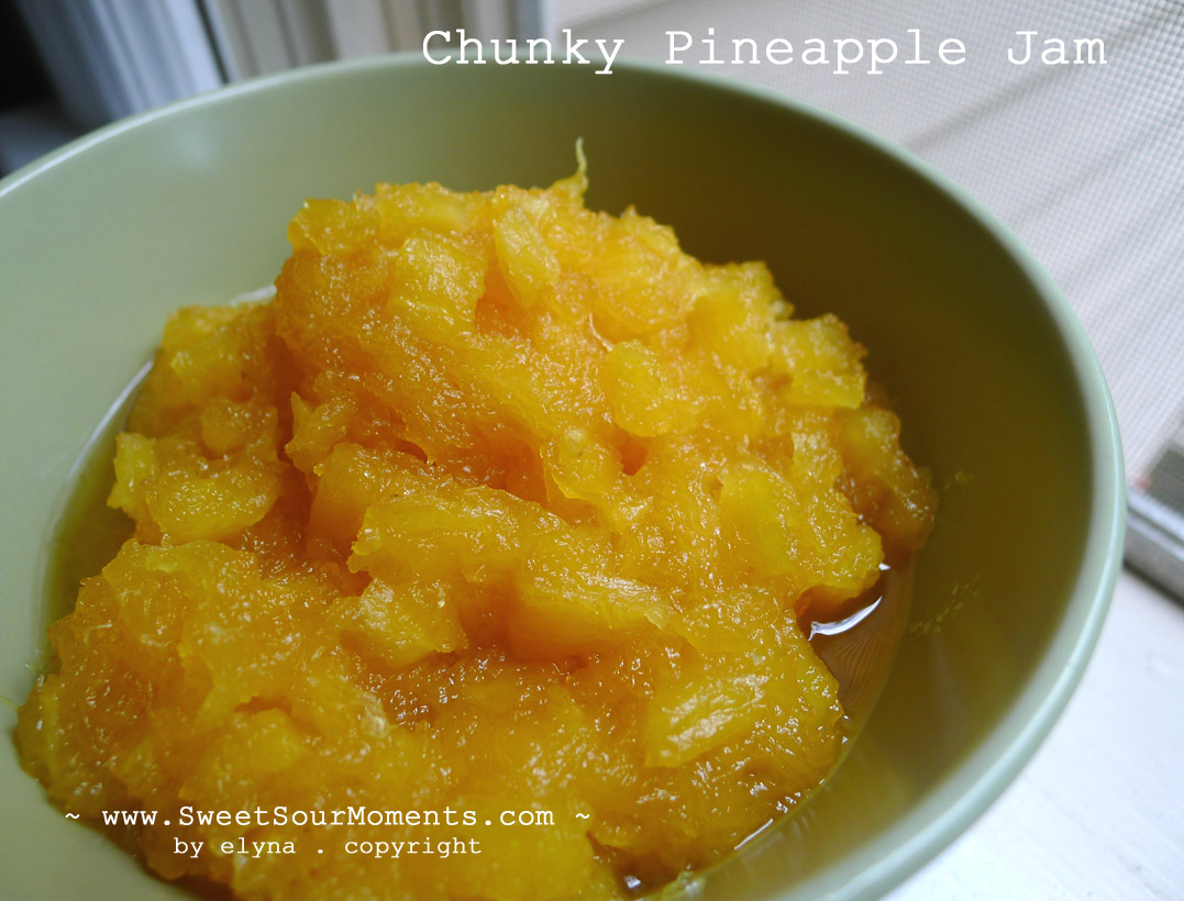 note : for making chunky pineapple jam, cook grated 1/2 fresh pineapple + diced 1/2 fresh pineapple (3/8″x3/8″) with sugar (the amount depends on your preferred sweetness) until the juice is reduced and thick. I prepared mine 1 day ahead.
