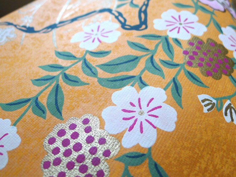 I’ve had this pretty wrapping paper since last year, it was from WorldMarket. At that time I had no idea what it will be used for, it was just so pretty I couldn’t resist to grab it. The color is one of my favorite, the drawing looks like hand painting, and it’s thick with luxury texture.It works well with the wall decor I recently planned to make for the special room I am decorating at this moments. The wall decor idea is from Etsy shop. Instead of printing poster, I want it to be more personal with custom look, so here is my DIY Alphabet wall decor.