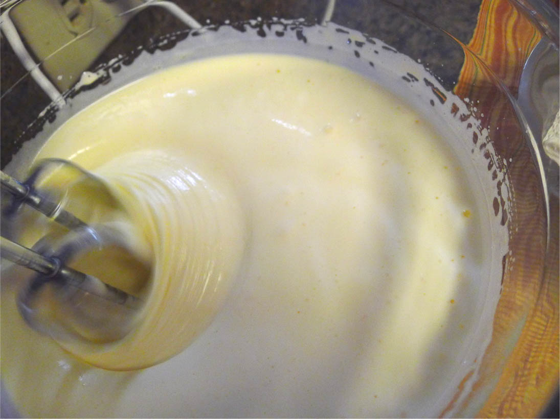 2. Whisk 6 eggs (at room temperature)+ 1 C sugar until pale and creamy.