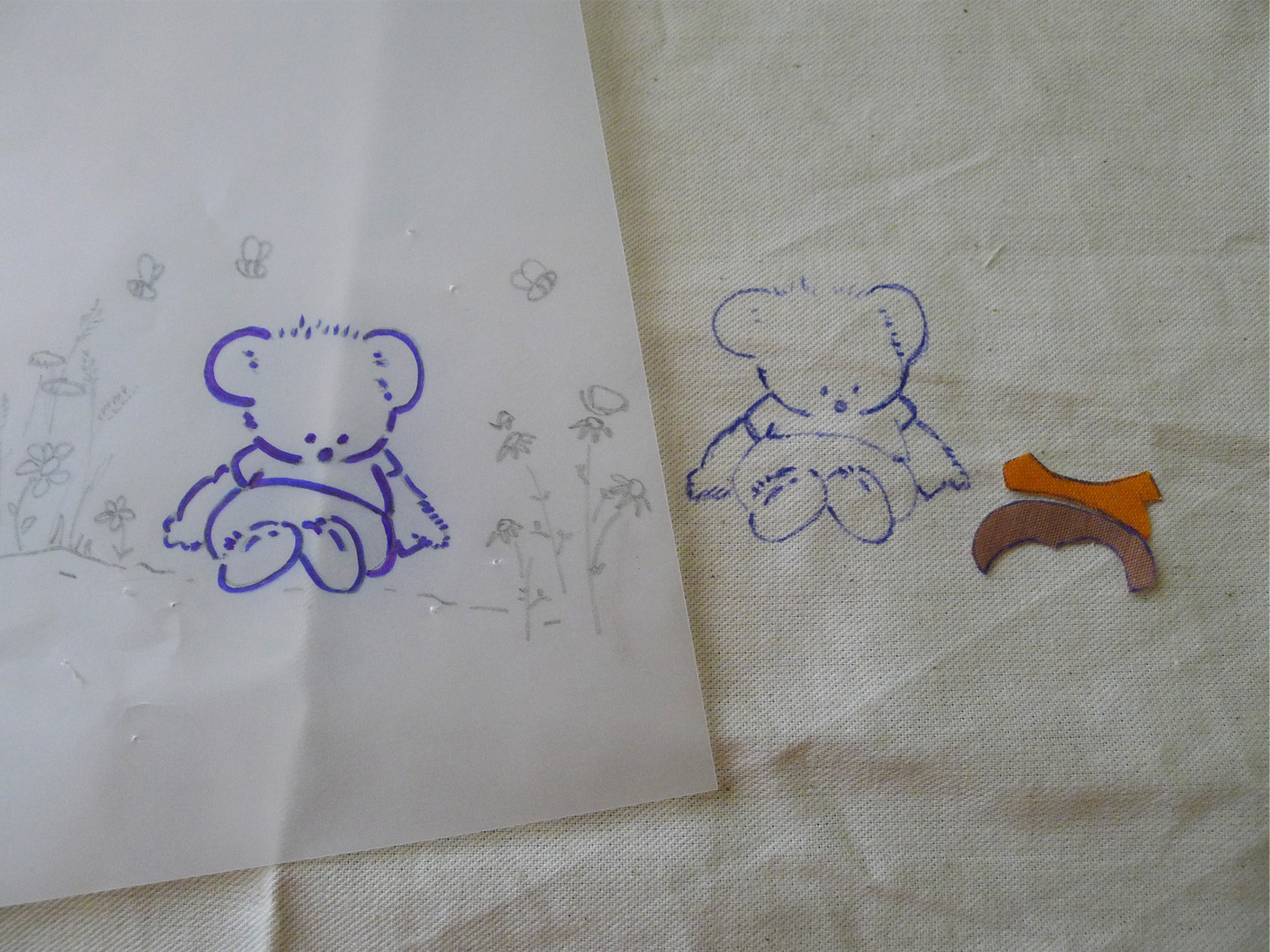 I cut the main (the one with bear embroidery) and lining fabric in 14″ x 18″ including 1/4″ seam allowance, the straps is 1″ wide x 12″ long ( finished size).