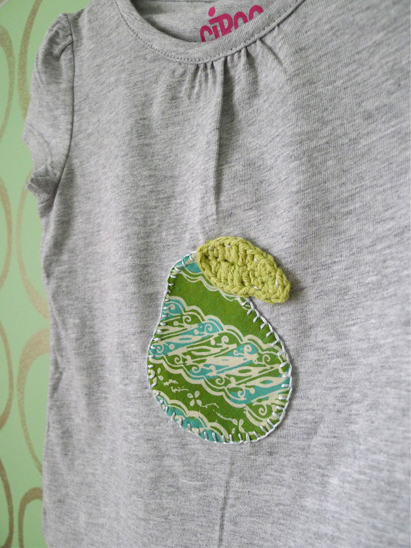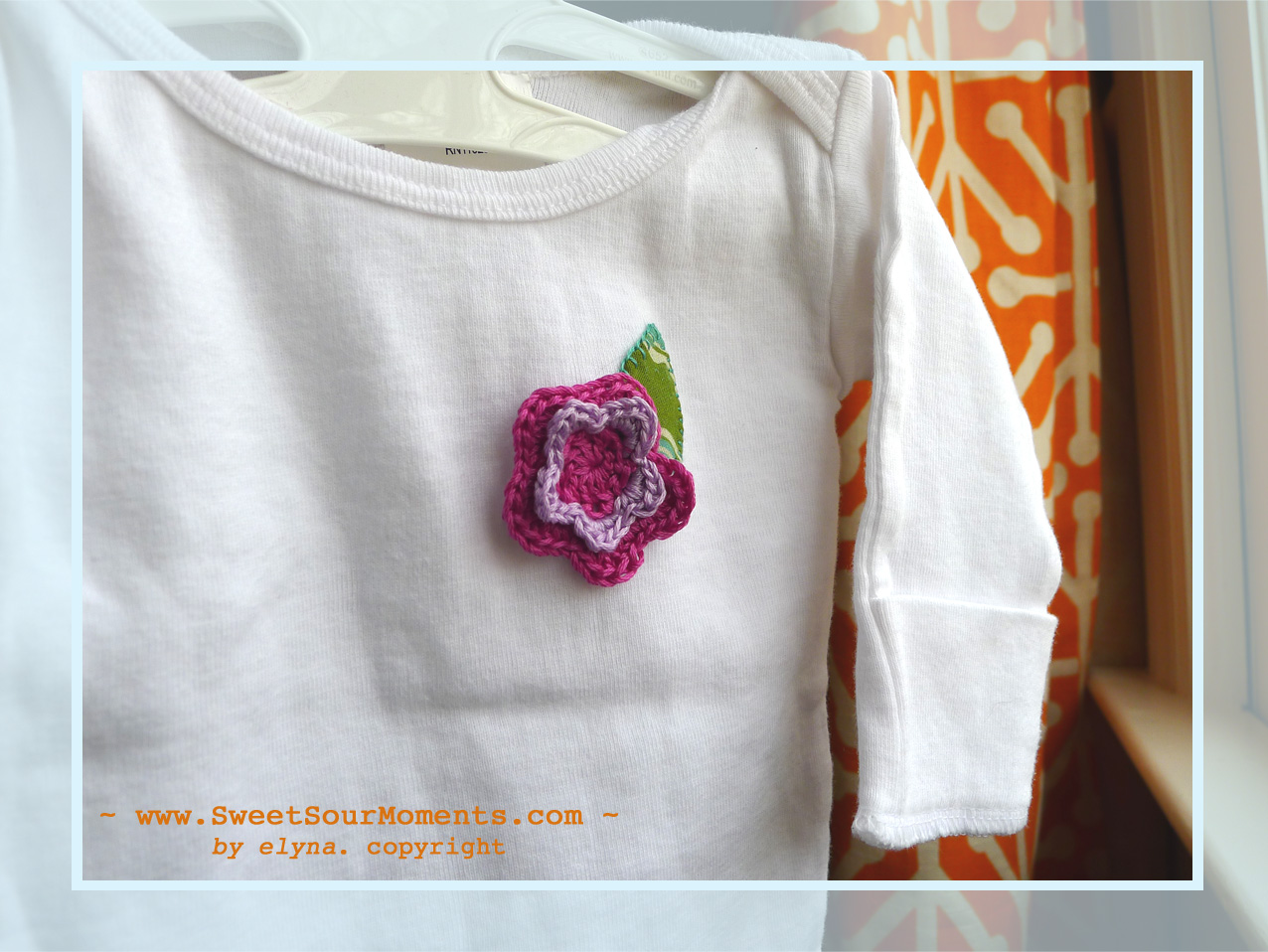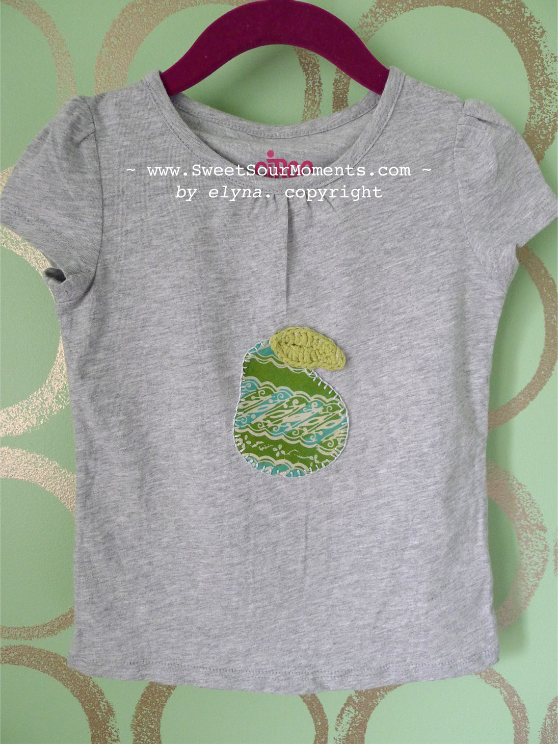 Remember my previous post Cupcake applique ? Here is the link https://sweetsourmoments.com/2014/03/14/crochet-cupcake-applique/ …. This is the same shirt only in different color.  For this one I used the combination of fabric and crochet.