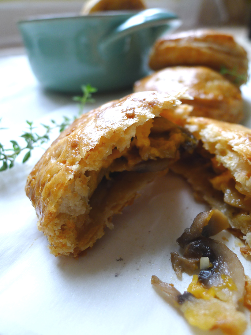 Mushroom is definitely one of my favorite thing in cooking… it is versatile and tastes delicious. Often times I only saute it in oil and add generous amount of garlic and that’s it, this simple menu’s never failed me. Mushroom in pasta is a perfect addition, mushroom in quiche is also very good. Though we, my husband and me, like mushroom very much, my little one does not. Luckily she likes this mushroom pie. This recipe is so good and easy, perfect for my little one snack time, I got it from King Arthur : http://www.kingarthurflour.com/recipes/spinach-and-mushroom-hand-pies-recipe. For the dough I followed  the original recipe, for the filling I excluded the spinach.