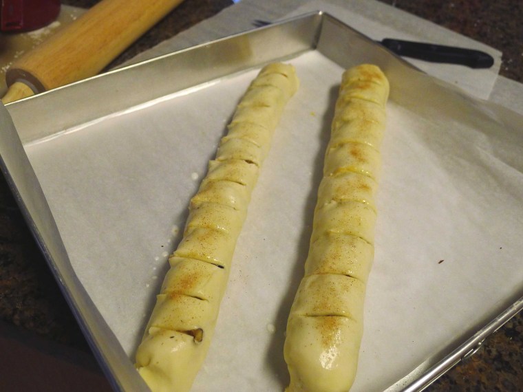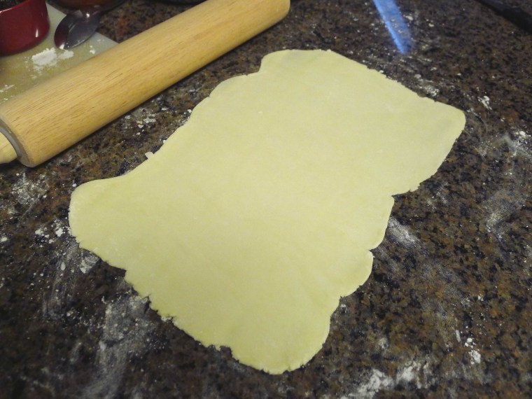 1. Cream together 3/4 pound (3sticks) unsalted butter (at room temperature) and 1 C sugar until just combined then add 1 tsp vanilla extract. On low speed mixed slowly add flour mixture (3 1/2 C all purpose flour + 1/4 tsp salt). Form the dough into a flat rectangle about 7″x 6″, wrap in plastic, chill for 30 minutes.